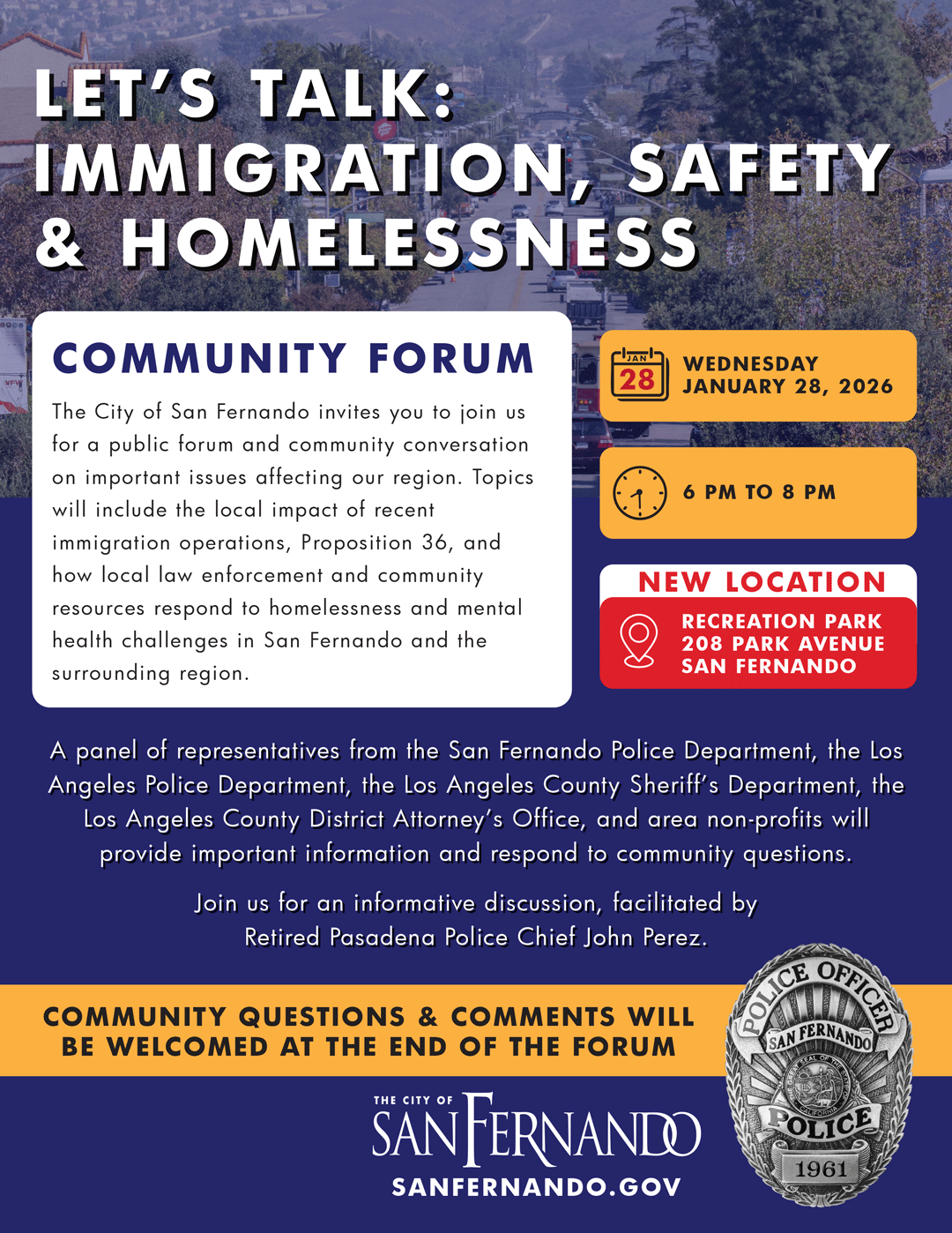As the Police Chief of the San Fernando Police Department, I want to express the San Fernando Police Department’s commitment to embracing the principles of 21st Century Policing and to reinforce our dedication to building trust, fostering transparency, and ensuring the safety and well-being of our community.